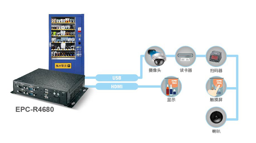 ▌▌研華方案研華提供了EPC-R4680精簡型工控機作為方案,該方案搭載Rockchip ARM Cortex-A17 RK3288 Quad core高性能處理器,穩(wěn)定可靠。同時支持4K 顯示及 4Kx2K多格式HDMI視頻解碼。此外,配有M.2, Mini-PCIe 及支持WIFI的SIM卡卡槽、支持BT及4G連接,6 USB 2.0, 6UART, 1 GbE 及 8 GPIO的豐富接口,是KIOSK、販賣機及數(shù)字標(biāo)牌應(yīng)用的理想解決方案。同時,1U的小尺寸,滿足客戶緊湊型需求。