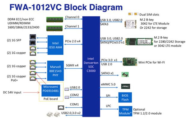 考慮到上述因素,客戶選擇了研華網(wǎng)絡(luò)應(yīng)用平臺FWA-1012vc作為其軟件方案的硬件架構(gòu),并通過LTE和wifi模塊支持蜂窩和WiFi網(wǎng)絡(luò),和有線網(wǎng)絡(luò)實(shí)現(xiàn)鏈路備份。