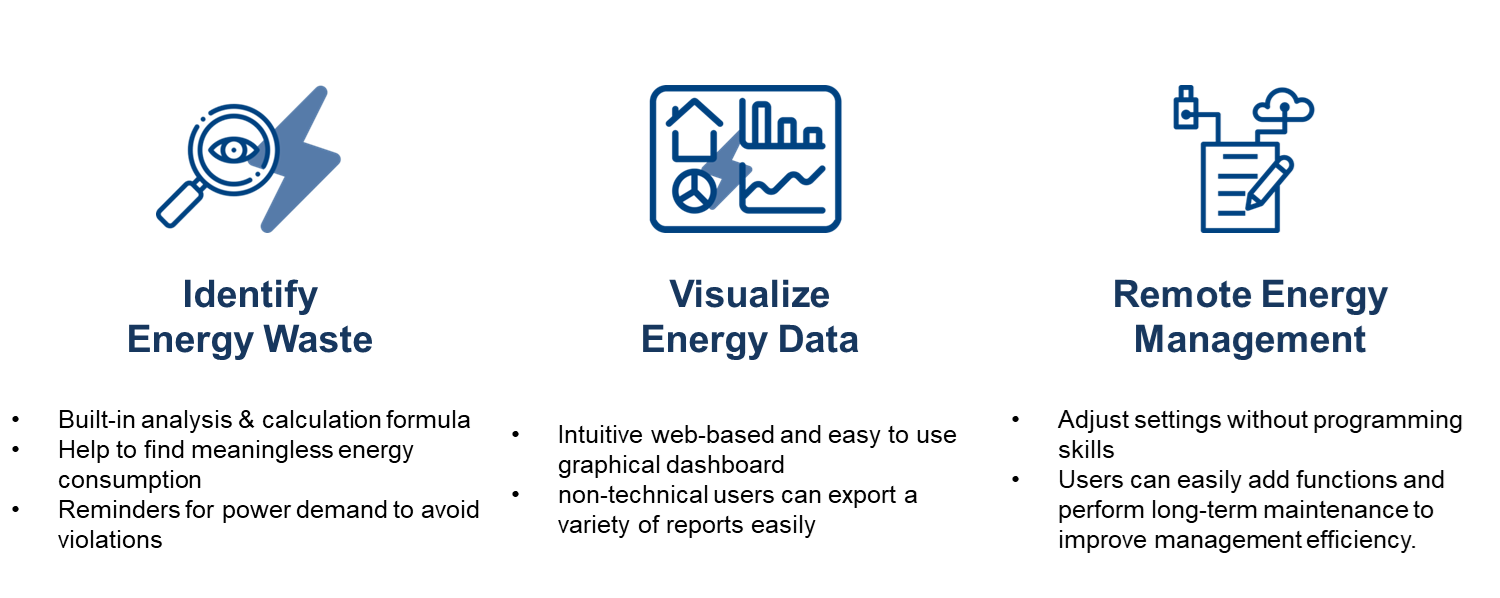 根據(jù)臺灣的“縣市推廣家庭和商業(yè)節(jié)能行動計劃”,能源管理系統(tǒng)是一套“軟件和硬件系統(tǒng),可以測量和分析能源使用情況,并集成信息以進(jìn)行管理決策,以幫助用戶實現(xiàn)節(jié)能目標(biāo)。” 除了改善能源績效和節(jié)省運營成本外,能源管理系統(tǒng)還整合了現(xiàn)有系統(tǒng),同時加強(qiáng)了整體管理。