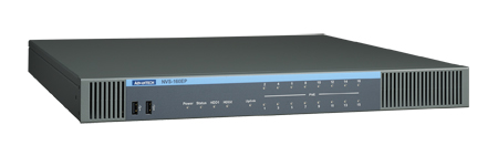 Advantech NVS-160 DSP-based video recorder combines the functions of a high performance Network Video Recorder with a power-over-Ethernet (PoE) Switch into one system. It provides PoE ports and optional composite video inputs, with automatic configuration, recording, and uplink with specific management software.